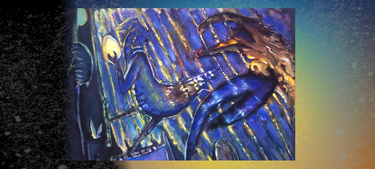 in greens and yellows,